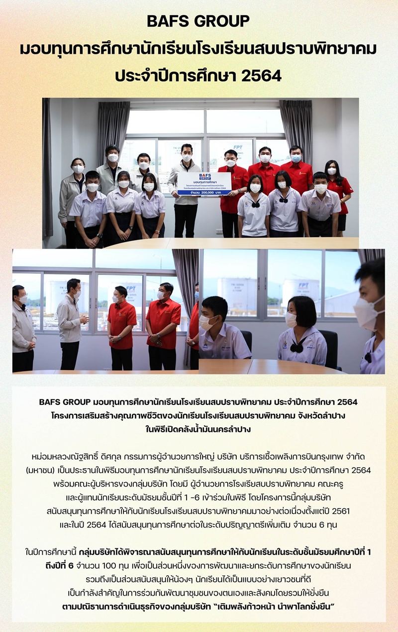 BAFS GROUP มอบทุนการศึกษานักเรียนโรงเรียนสบปราบพิทยาคม ประจำปีการศึกษา 2564