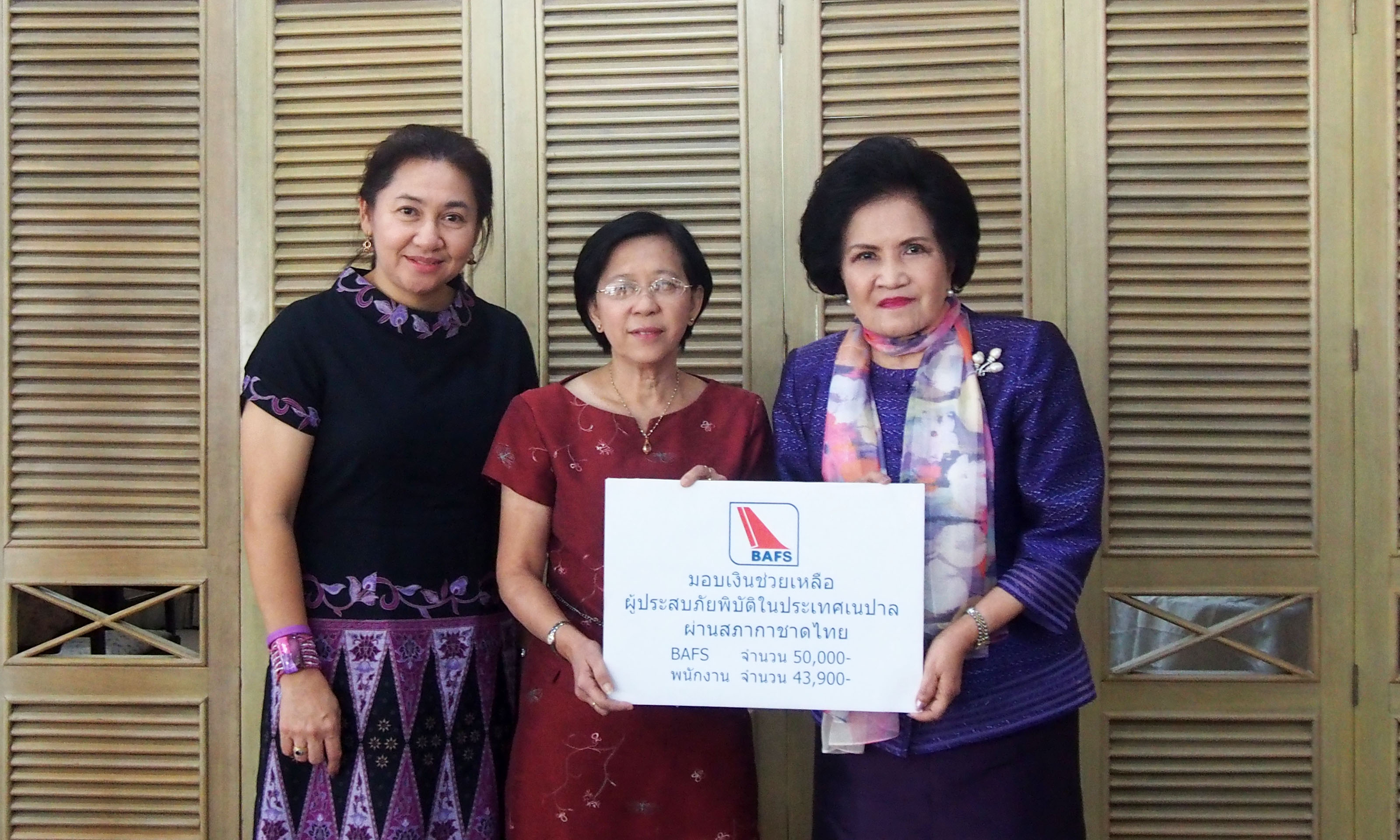 ผู้บริหาร BAFS GROUP มอบเงินช่วยเหลือผู้ประสบภัยน้ำท่วมภาคใต้ ผ่านสภากาชาดไทย รับมอบโดย มรว.ปรียางค์ศรี วัฒนคุณ เมื่อวันที่ 12 มกราคม 2560 ณ สภากาชาดไทย