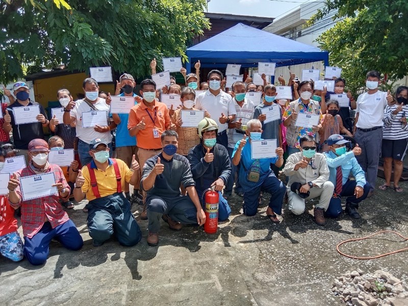 บริษัท บริการเชื้อเพลิงการบินกรุงเทพ จำกัด (มหาชน) จัดกิจกรรมอบรมดับเพลิงชุมชนขั้นพื้นฐาน ชุมชนรบสถานีบริการจัดเก็บน้ำมันอากาศยานดอนเมือง