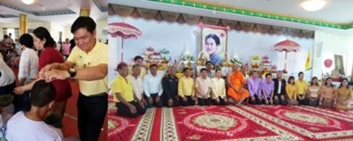 คุณสุวัฒน์ชัย พัชรแสงทอง ผู้อำนวยการฝ่ายคลังน้ำมันพร้อมพนักงานฝ่ายชุมชนสัมพันธ์ เข้าร่วมงานอุปสมบทหมู่