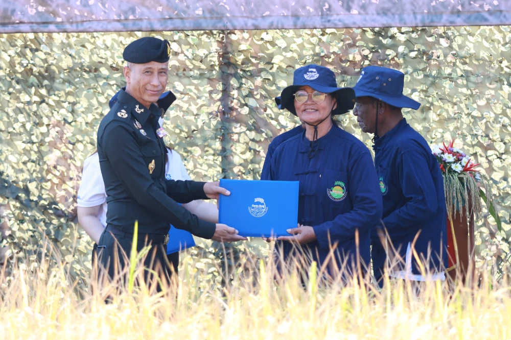 ภายในพิธี เกษตรกรผู้เข้าร่วมโครงการได้มอบผลผลิตข้าวหอมมะลิให้แก่ผู้แทน เพื่อน้อมเกล้าน้อมกระหม่อมทูลเกล้าฯ ถวายตามพระราชอัธยาศัย นอกจากนี้ BAFS GROUP ยังร่วมสนับสนุนการยกระดับมาตรฐานเกษตรอินทรีย์ในพื้นที่ ผ่านพิธีมอบใบรับรองมาตรฐานเกษตรอินทรีย์แบบมีส่วนร่วม (PGS) ซึ่งได้รับความร่วมมือจากกองทัพภาคที่ 3 เพื่อส่งเสริมระบบการผลิตอินทรีย์อย่างยั่งยืนให้แก่เกษตรกรในชุมชน