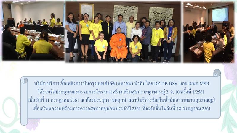 บริษัท บริการเชื้อเพลิงการบินกรุงเทพ จำกัด (มหาชน) โดยคุณสุวัฒน์ชัย พัชรแสงทอง ผู้อำนวยการ ฝ่ายคลังน้ำมันต้อนรับคณะดูงานจากสำนักงานพัฒนาชุมชนอำเภอบางเสาธงและสื่อมวลชนที่เข้ามาศึกษาชุมชนหมู่ 1