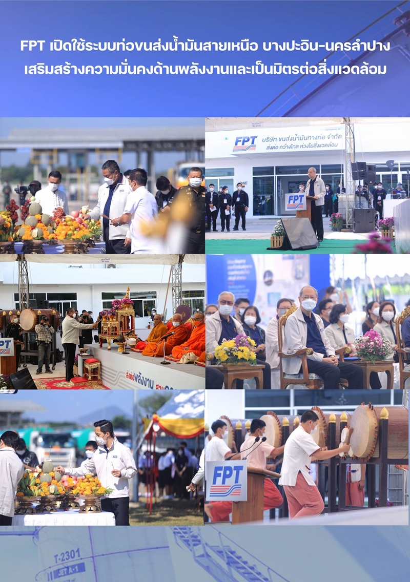 FPT เปิดใช้ระบบท่อขนส่งน้ำมันสายเหนือ บางปะอิน-นครลำปาง เสริมสร้างความมั่นคงด้านพลังงานเเละเป็นมิตรต่อสิ่งเเวดล้อม