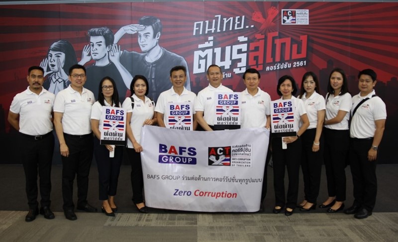 กรรมการผู้จัดการบริษัทและกรรมการผู้จัดการบริษัทย่อย พร้อมฝ่ายบริหารและตัวแทนพนักงาน BAFS GROUP ร่วมงานวันต่อต้านคอร์รัปชั่น ภายใต้แนวคิด “คนไทย ตื่นรู้สู้โกง” เพื่อแสดงพลังและจุดยืนของ BAFS GROUP ในการต่อต้านการคอร์รัปชั่นทุกรูปแบบ เมื่อวันที่ 6 กันยายน 2561 ณ ห้องภิรัช ฮอลล์ ศูนย์นิทรรศการและการประชุมไบเทค บางนา