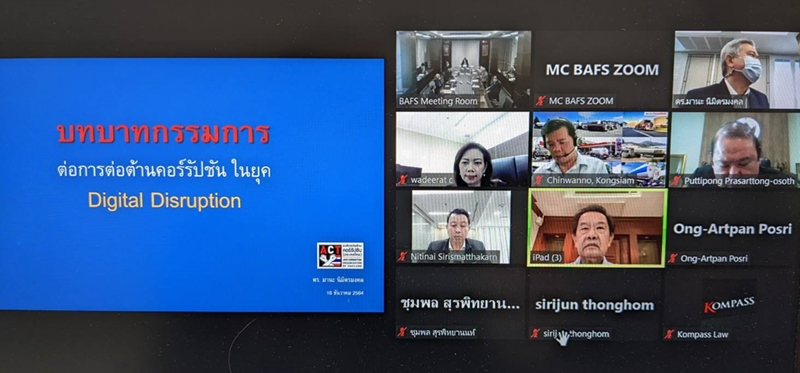 บริษัทได้จัดบรรยายในหัวข้อ “บทบาทกรรมการต่อการต่อต้านคอร์รัปชั่นในยุค Digital Disruption” แก่คณะกรรมการบริษัท โดยวิทยากร ดร.มานะ นิมิตรมงคล เลขาธิการองค์กรต่อต้านคอร์รัปชั่น (ประเทศไทย) เมื่อวันที่ 16 ธ.ค.2564