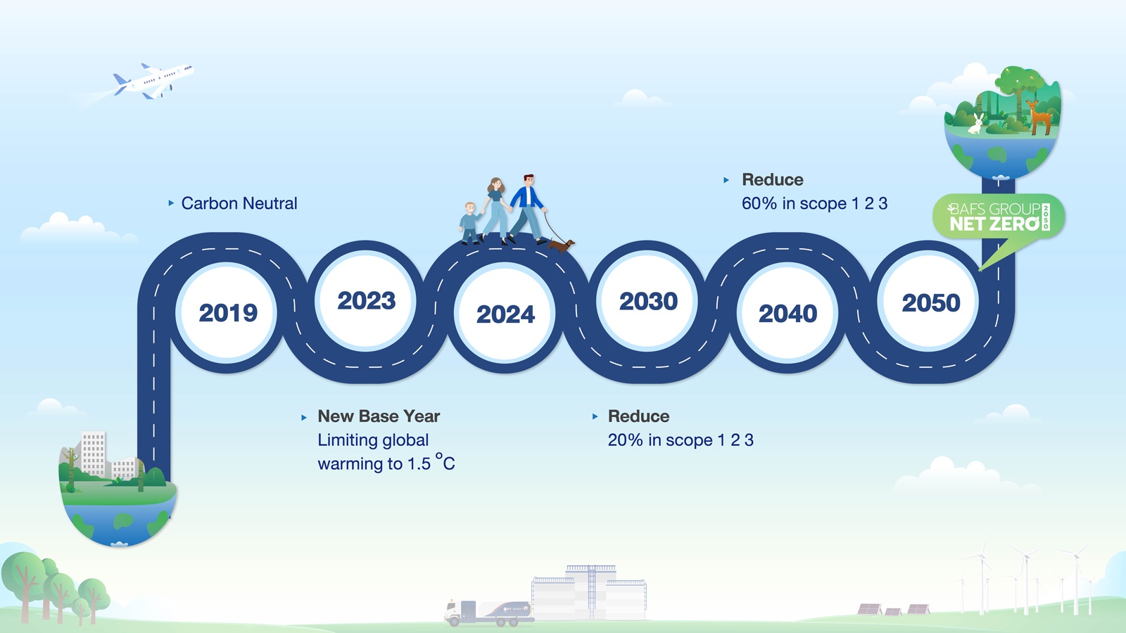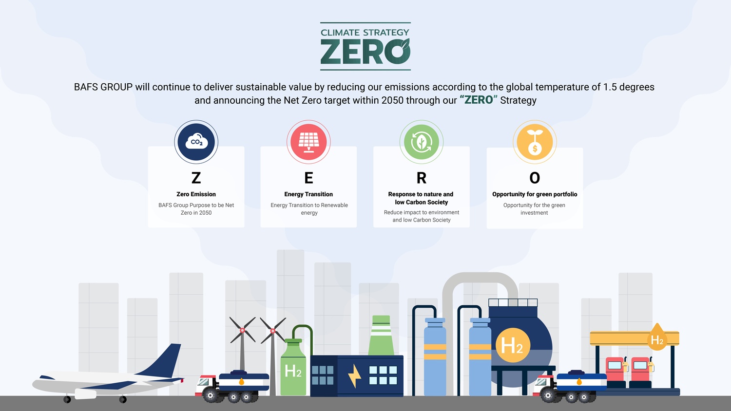 BAFS GROUP will continue to deliver sustainable value by reducing our emissions according to the global temperature of 1.5 Degree Celsius and announcing the Net Zero target within 2050 through our “ZERO” Strategy