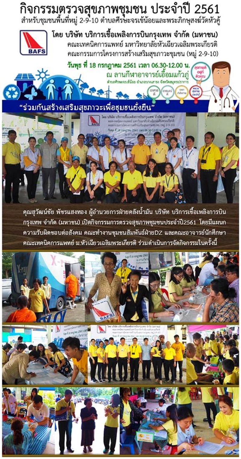บาฟส์ จัดกิจกรรมตรวจสุขภาพชุมชนพื้นที่สถานีบริการจัดเก็บน้ำมันอากาศยานสุวรรณภูมิ ประจำปี2561