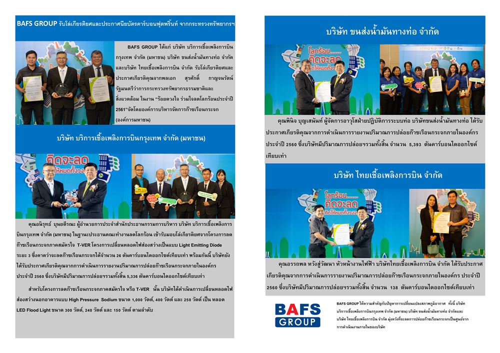 BAFS GROUP เข้ารับโล่เกียรติยศและประกาศนียบัตรคาร์บอนฟุตพริ้นท์จาก กระทรวงทรัพยากรธรรมชาติและสิ่งแวดล้อม
