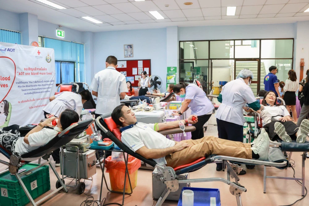 พนักงานกลุ่มบริษัท บริการเชื้อเพลิงการบินกรุงเทพ จำกัด (มหาชน) (BAFS) ร่วมกับบริษัท ท่าอากาศยานไทย จำกัด (มหาชน) (AOT) ในกิจกรรมบริจาคโลหิต