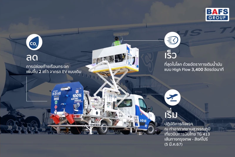 บาฟส์ รุดหน้า ผลิตรถเติมน้ำมันอากาศยาน EV เติมน้ำมันเครื่องบินได้เร็วที่สุดในโลก ลดคาร์บอน 2 เท่า มุ่งสร้างอุตสาหกรรมการบินสู่ความยั่งยืน